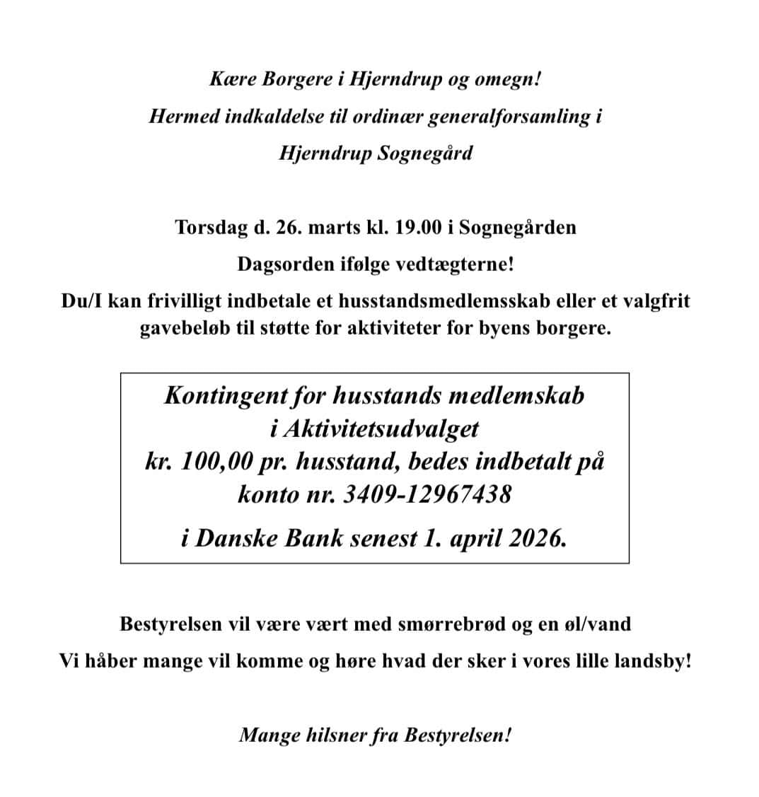 Torsdag den 12. marts kl 19.30 i Multihuset i Simmersted. Lokalhistorisk Forening for Maugstrup – Kastvraa – Simmersted – Hjerndrup afholder generalforsamling Dagsorden iflg. vedtægterne. Efter generalforsamlingen vil f.hv. museumsinspektør Lennart S. Madsen fortælle om Sønderjylland i middelalderen med focus på vore sogne, herunder Hjerndrup og Maugstrup kirker. Og så er der selvfølgelig lagkager fra … Læs mere